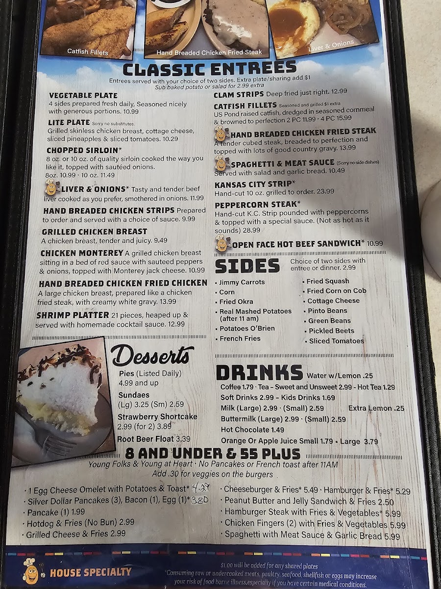 Beyond traditional breakfast and lunch, you can find thoughtful side options like fried grits, garlic bread, and corn on the cob, rounding out meals that feel at once nostalgic and satisfying. For those with a sweet tooth, the menu features a variety of homemade pies and cheesecakes that complement the relaxed café vibe.